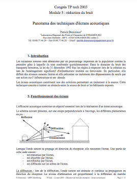 Le ministère de l'Ecologie et du Développement durable a édité en 2003 un document consacré aux différentes techniques de réalisation d’écrans acoustiques. Patrick Demizieux, chargé d’études au groupe acoustique du Laboratoire régional des Ponts et Chaussées de Strasbourg, y dresse un panorama qui couvre l’essentiel des aspects techniques et normatifs propres à cette solution. -