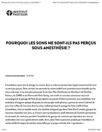 L’anesthésie a pour but de plonger le cerveau dans un état inconscient dans lequel notamment les sons ne sont pas perçus. Dans cet état, les neurones du cortex auditif sont pourtant encore stimulés par les sons, mais ceux-ci ne sont plus perçus par le cerveau. Des chercheuses et chercheurs de l’Institut Pasteur, du CNRS et de l’Université Paris-Saclay, ont révélé un nouveau mécanisme neuronal accompagnant le passage de l’état de perception consciente à l’état inconscient, sous anesthésie. -