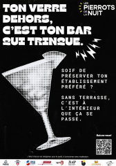À travers cette nouvelle campagne d’affichage, les Pierrots de la Nuit s’engagent auprès des établissements nocturnes afin de sensibiliser la clientèle aux nuisances sonores. -