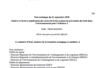 Note technique du 21 septembre 2018 relative à l’arrêt et publication des cartes de bruit et plans de prévention du bruit dans l’environnement pour l’échéance 3