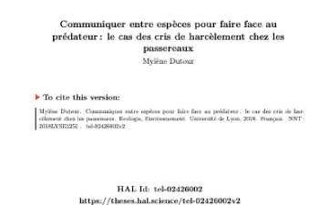 Communiquer entre espèces pour faire face au prédateur : le cas des cris de harcèlement chez les passereaux