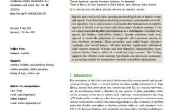 Rhythm and vocal production learning are building blocks of human music and speech. Vocal learning has been hypothesized as a prerequisite for rhythm…