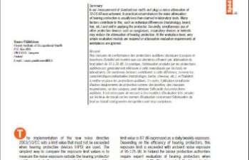 Atelier : Protecteurs individuels : quelle est leur atténuation réelle ? Practical noise attenuation of hearing protectors according to noise directive 2003/10/EC