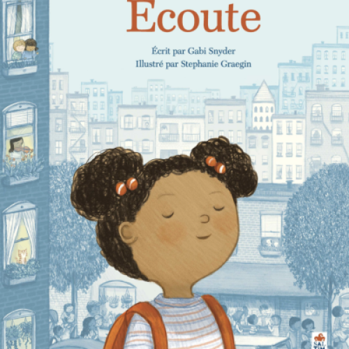 Quand tu t’aventures dans ce monde immense et animé, tout ce que tu entends, c’est… du bruit ! Mais si tu arrêtes, que tu fermes les yeux et que tu écoutes vraiment… Wouaf wouaf ! Tut tut ! Bip bip ! Vroum ! Pshiiit ! Peux-tu distinguer chacun des sons ? Entends-tu ces chiens qui ja-jappent entre eux ? Ou ces corbeaux qui croa-croassent en duo ? Entends-tu les chaussures qui font clac clac clac sur le trottoir ? Et les enfants guillerets qui jouent à la corde à sauter ? Entends-tu ce que ressent ton amie ? Écoute au-delà du silence. Qu’entends-tu maintenant ? -